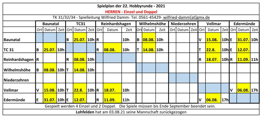 2:0HOBBYRUNDE Herren 2021 DOPPEL Stand: 22. September |